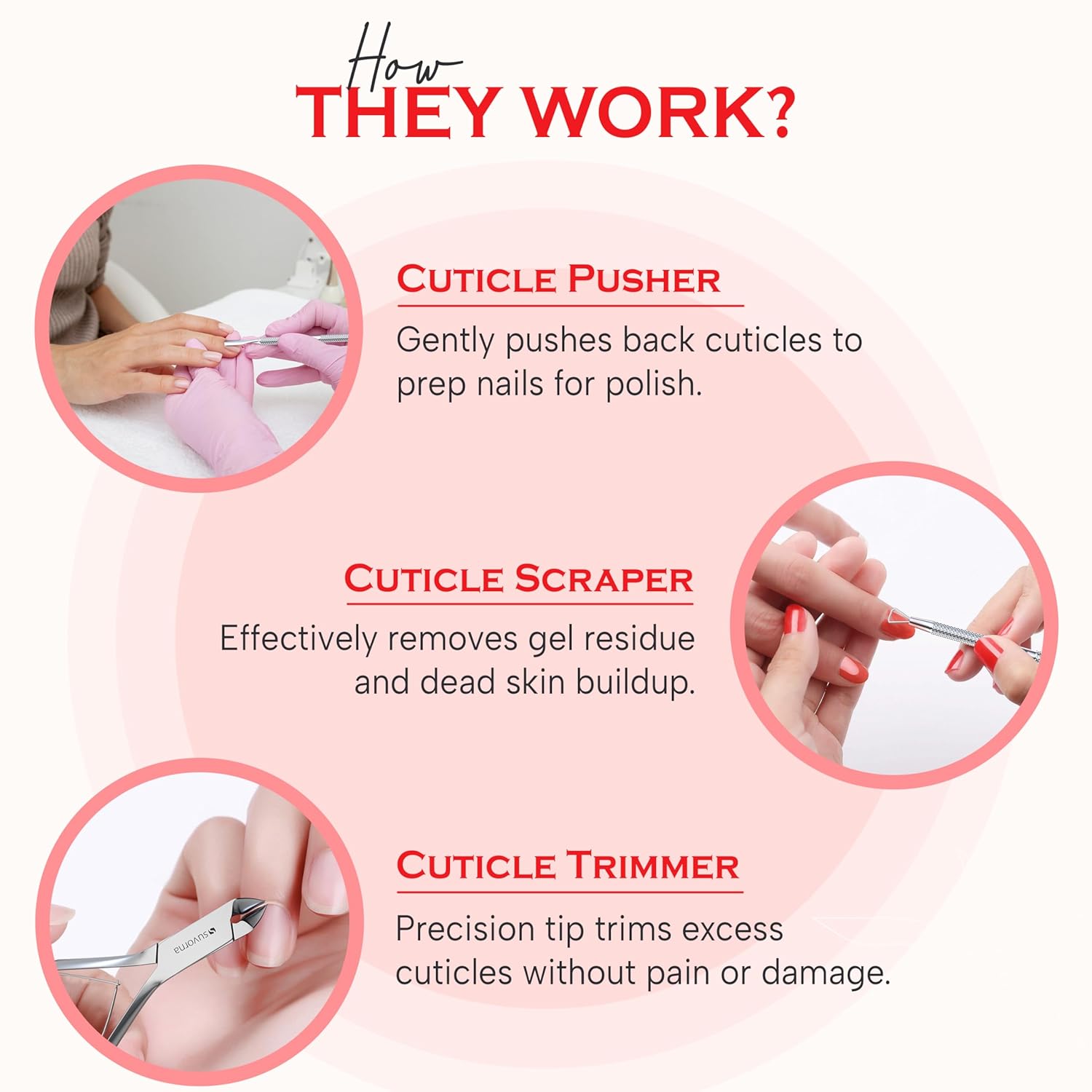 - ✅ Premium Stainless Steel Craftsmanship: Built with upgraded polished stainless steel, this professional 5-in-1 cuticle trimmer set includes a cuticle trimmer, cuticle pusher, cuticle cutters for nails, nail scraper and gel remover. Sharp, rust-resistant, and long-lasting—perfect manicure tools for fingernails, dead skin, and cuticle maintenance.