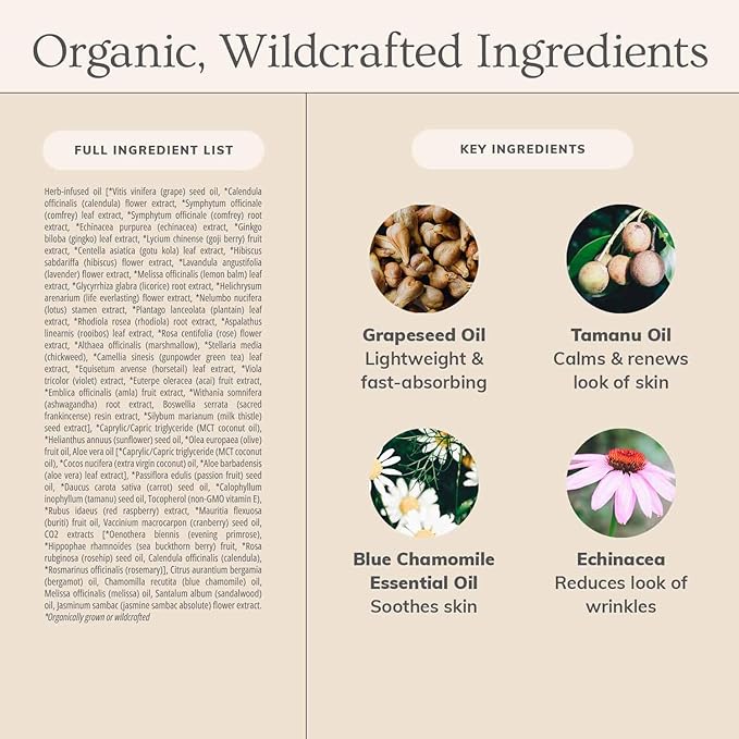 - Key Ingredients: Grapeseed Oil, Blue Chamomile Essential Oil, Tamanu Oil, Echinacea