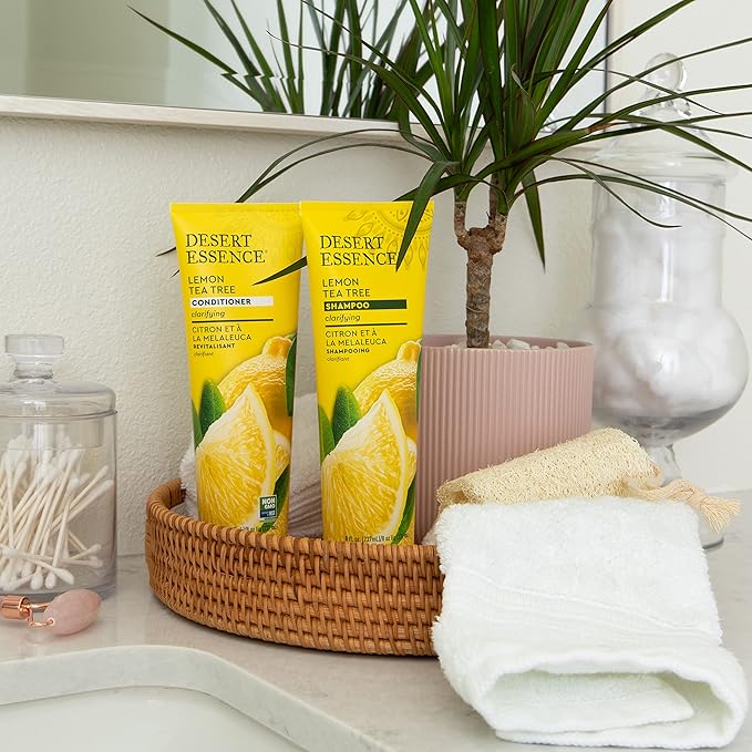 Desert Essence Conditioner, Lemon Tea Tree, Clarifying Provitamin B5, Organic Lemon Peel Extract & Nourishing Aloe - Purifying, Moisturizing, Soothing - Vegan, Sulfate-Free, Cruelty-Free - 8oz