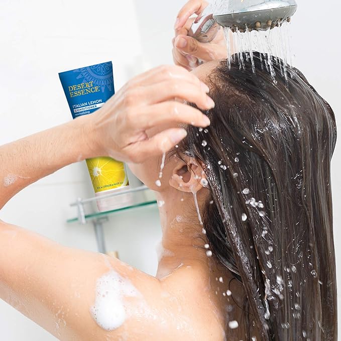 Desert Essence Italian Lemon Conditioner - 8 Fl Oz - Revitalizing Hair Detangler - Adds Volume - Shine - Strength - Scented - Certified Organic - Aloe Vera - Vitamin B5 - Cruelty Free - No Parabens