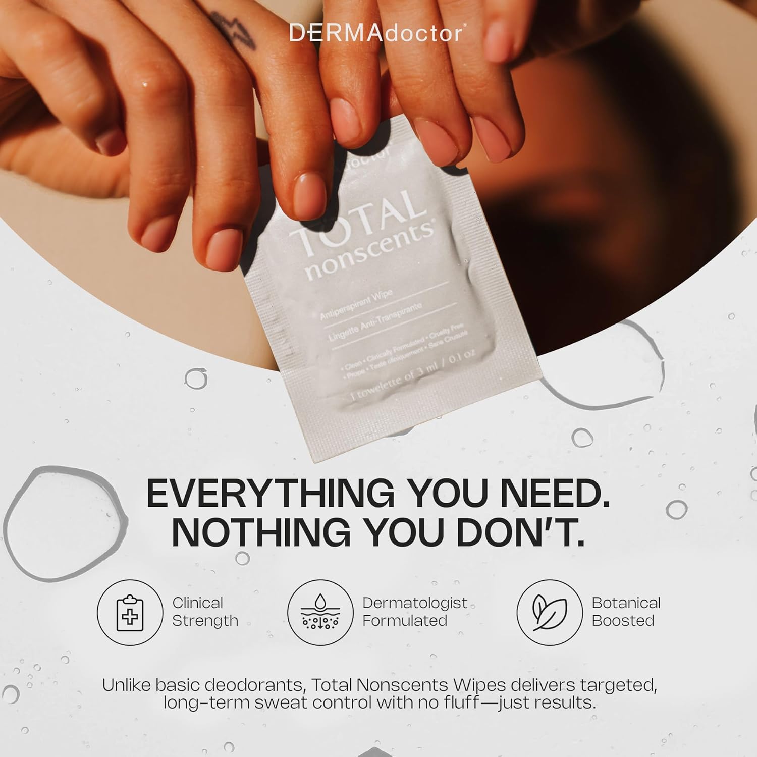 DERMAdoctor Antiperspirant Wipes - Refreshing Deodorant Wipes, Dermatologist Formulated Hyperhidrosis Treatment for Body Hands Feet | Anti Sweat Wipe, Foot Deodorant, Individually Wrapped - 10 Count