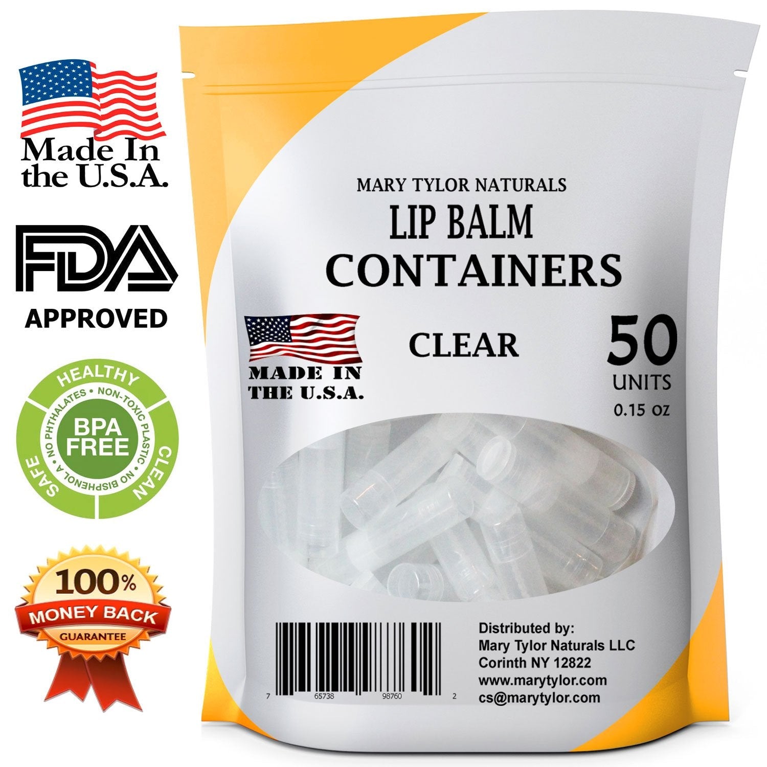 50 Clear Lip Balm Containers Round Tubes, BPA Free, Made in USA, 100% BPA Free, with Clear Caps For DIY Lipstick, homemade Lip Balms by Mary Tylor Naturals