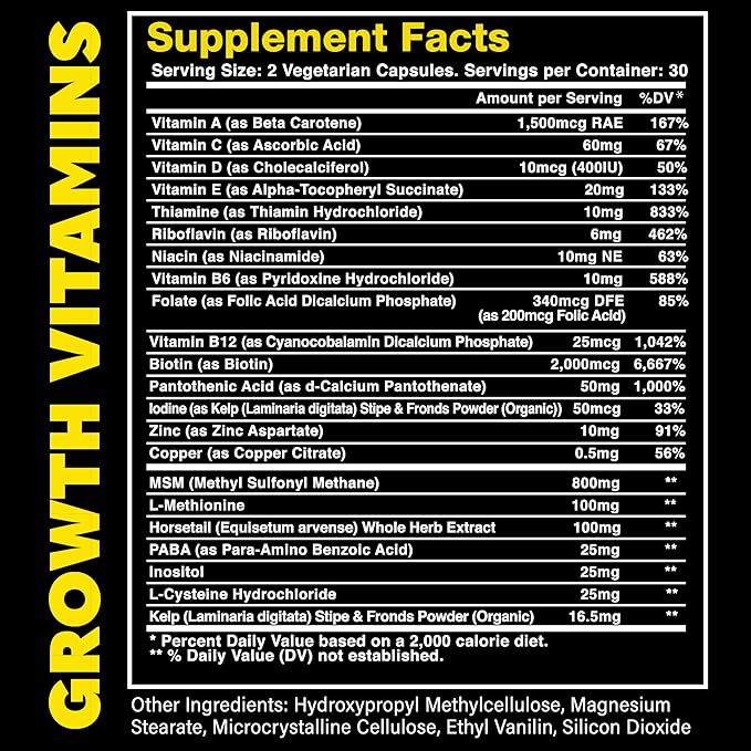 - Growth Accelerant - Over 20 essential vitamins and minerals, such as Biotin, Vitamin B-12 and MSM, to help support the growth of heathy facial hair and skin, while also helping to support healthy Testosterone production