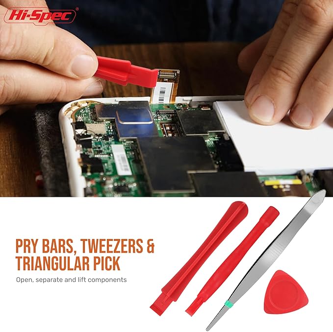 - Pry, Pick, & Open with Ease: Three opening tools—plastic pry bars and a triangular pick—help you safely slide open bezels, covers, and panels without damaging your devices; great for quick and easy disassembly