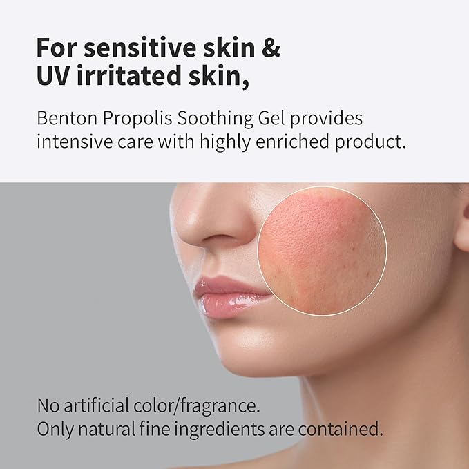 - SOOTHING AND CALMING INGREDIENTS: Benton face gel is enriched with Aloe Vera Leaf Juice and Extract, Propolis Extract, Grapefruit Fruit Extract, and other botanical ingredients. These nourishing ingredients in our face cream soothe irritated skin while providing ample nourishment, fighting and protecting from external stimuli.