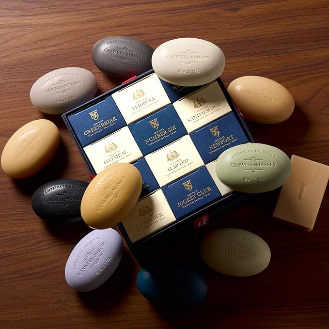- Twelve Signature Fragrances: Explore the full range of Caswell-Massey’s artistry with Almond, Sandalwood, Lavender, Verbena, Oatmeal, OAIRE, LX48, Greenbriar, Number Six, 2571, Newport, and Jockey Club soaps.