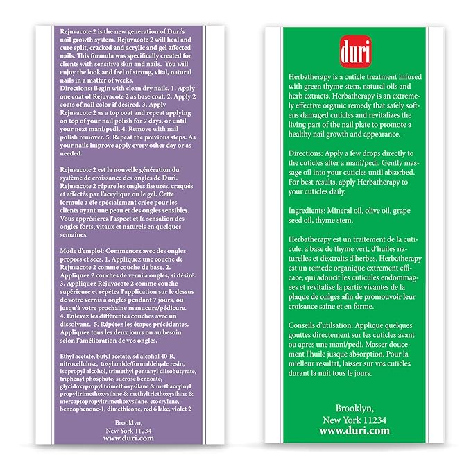 duri Rejuvacote 2 Nail Growth System Base and Top Coat, Herbatherapy Cuticle Treatment Drops - Damaged Cuticles Repair, Growth, Healthier, Stronger Nails, Strengthener (Combo Pack)