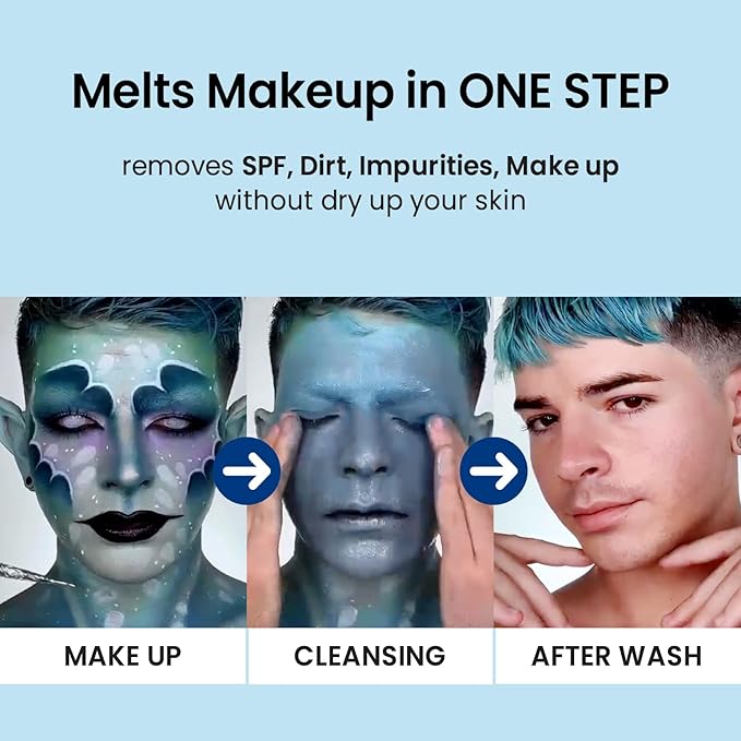 - MELTS STUBBORN MAKEUP, SUNSCREEN & BLACKHEADS FAST Effortlessly removes waterproof mascara, SPF, and blackheads without double cleansing. Say goodbye to clogged pores and hello to glowing skin.