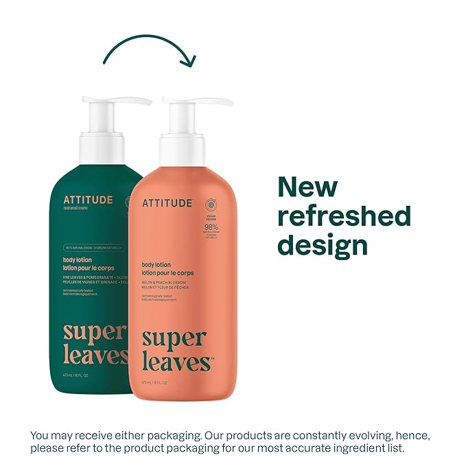 ATTITUDE Body Lotion, EWG Verified Moisturizer, Vegan Skin Care Products, Non-Greasy, Hydrating for Dry Skin, Cruelty Free, Glowing, Vine Leaves and Pomegranate, 16 Fl Oz