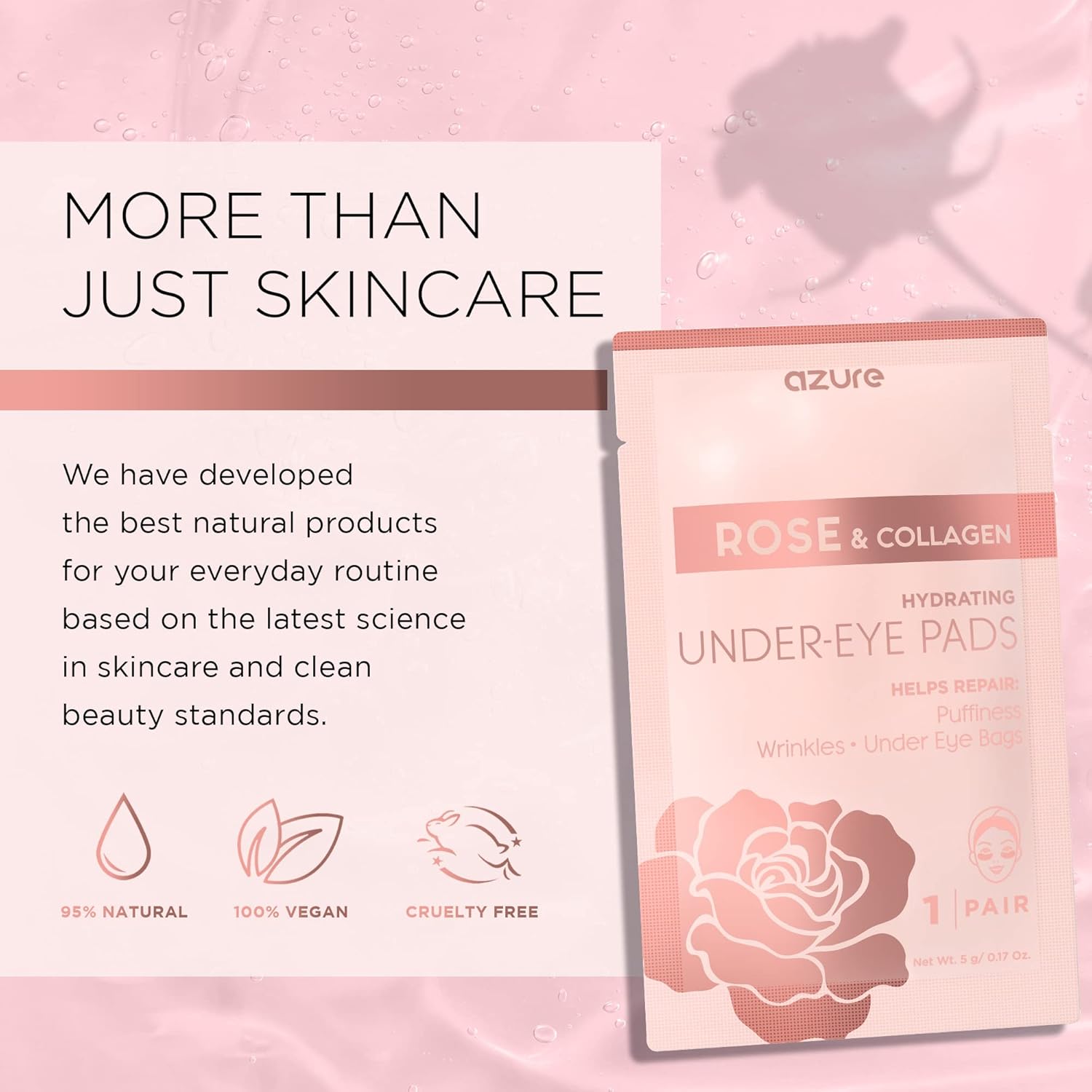 AZURE Rose & Collagen Hydrating Under Eye Pads - Anti Aging, Revitalizing & Moisturizing Eye Mask Patches - Reduces Fine Lines, Wrinkles, Dark Circles & Puffiness - Skin Care Made in Korea - 5 Pairs