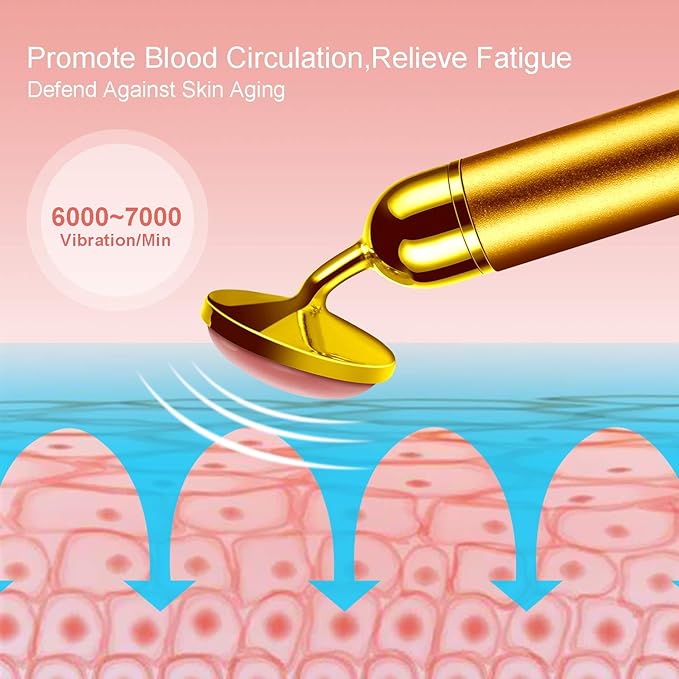 - Perfect New Design: This 24k face massager kit design to fitswell to every corner of face, make you enjoy comfort experience. One-button control to turn on/off, without too much operation. More importantly, you can use the facial massager anytime, anywhere, because of its portable design and includes a delicate storage bag.