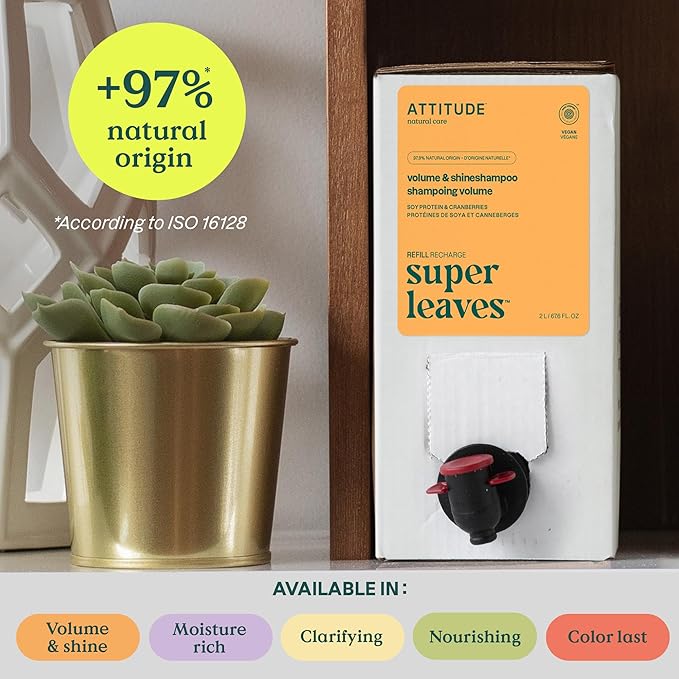 ATTITUDE Volume and Shine Hair Shampoo, EWG Verified, For Thin Hair, Naturally Derived Ingredients, Vegan and Plant Based, Soy Protein and Cranberries, Bulk Refill, 67.6 Fl Oz