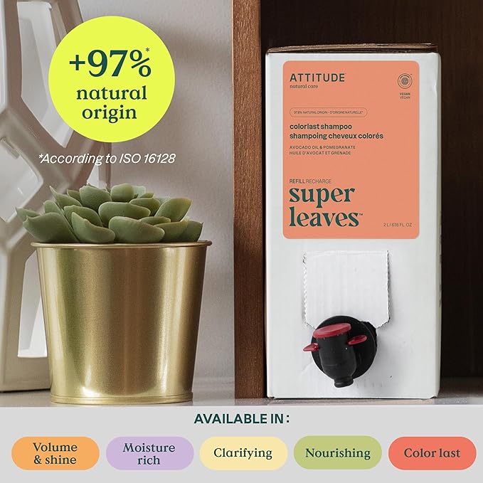 ATTITUDE Colorlast Hair Shampoo, EWG Verified, For Color Treated Hair, Protects Color, Naturally Derived Ingredients, Vegan and Plant Based, Avocado Oil and Pomegranate, Bulk Refill, 67.6 Fl Oz