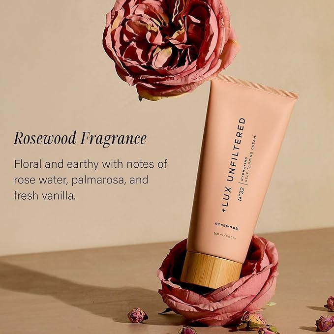 '+ Lux Unfiltered N°32 Gradual Self Tanner, Hydrating Self Tanning Lotion with Shea Butter & Squalane - Non-Sticky, No Transfer, Natural-Looking Tan - Vegan & Cruelty-Free Sunless Tanner - Rosewood