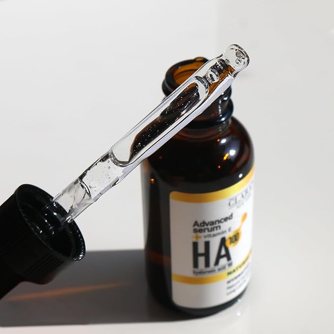 CLARA'S NEW YORK Glycolic Acid Facial Serum with Vitamin E for Exfoliating Smoothing Glowing Face Skin - Made in USA 30ml (1Fl/Oz) (Hyaluronic Acid 100)