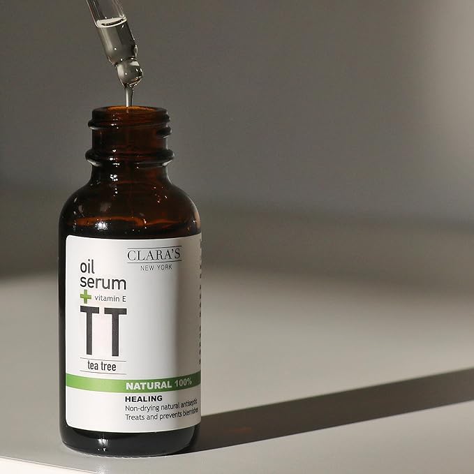 CLARA'S NEW YORK Glycolic Acid Facial Serum with Vitamin E for Exfoliating Smoothing Glowing Face Skin - Made in USA 30ml (1Fl/Oz) (Tea Tree)