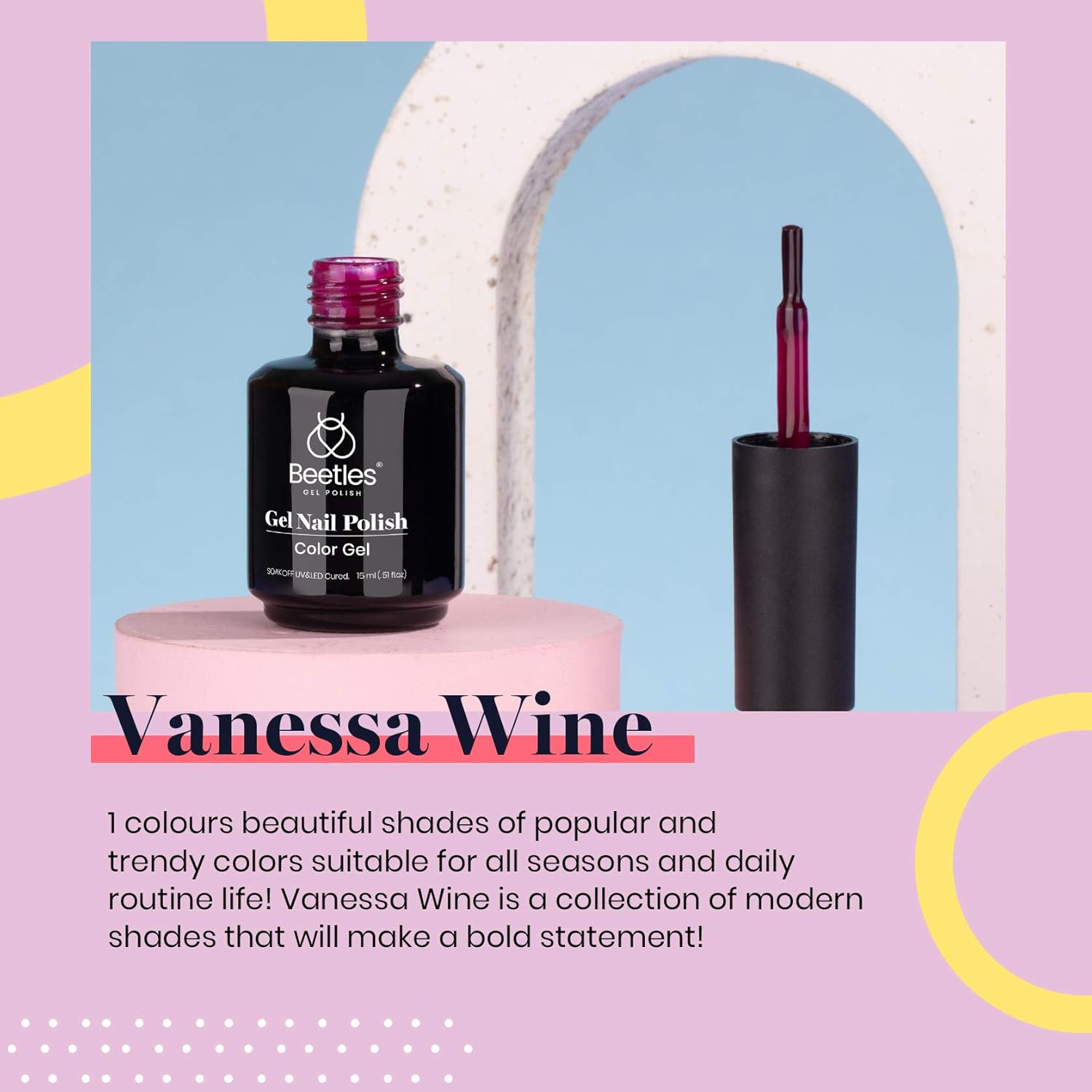 - 【Personal Style】:Beetles Gel Nail Polish Vanessa Wine Pruple Burgundy Red Color,elegant shades of popular and trendy colors suitable for all seasons and daily routine life! Color Number: ia238