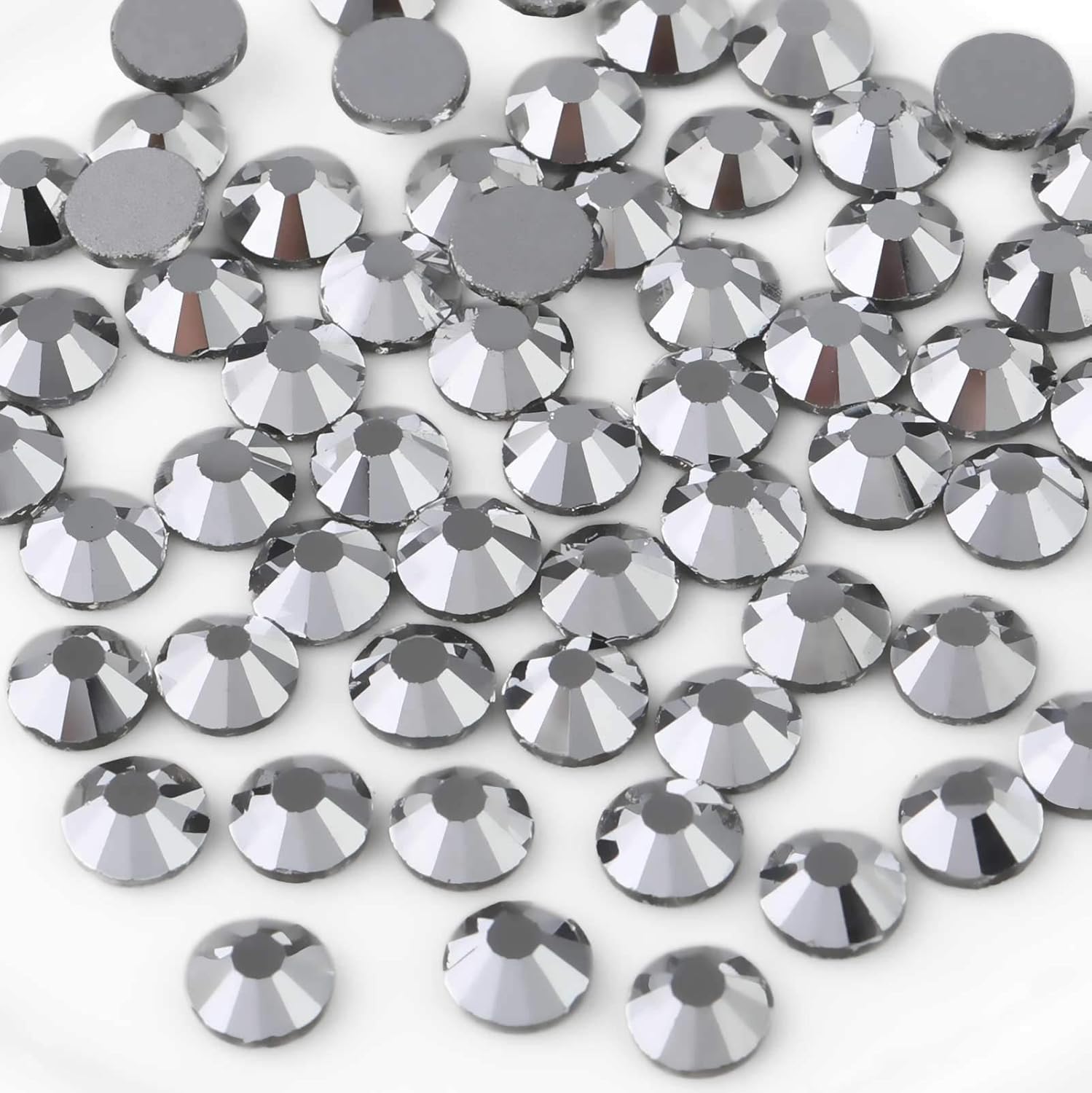 Beadsland Flat Back Crystal Rhinestones Round Gems for Nail Art and Craft Glue Fix,Silver Hematite (4.6-4.8mm) SS20/1440pcs