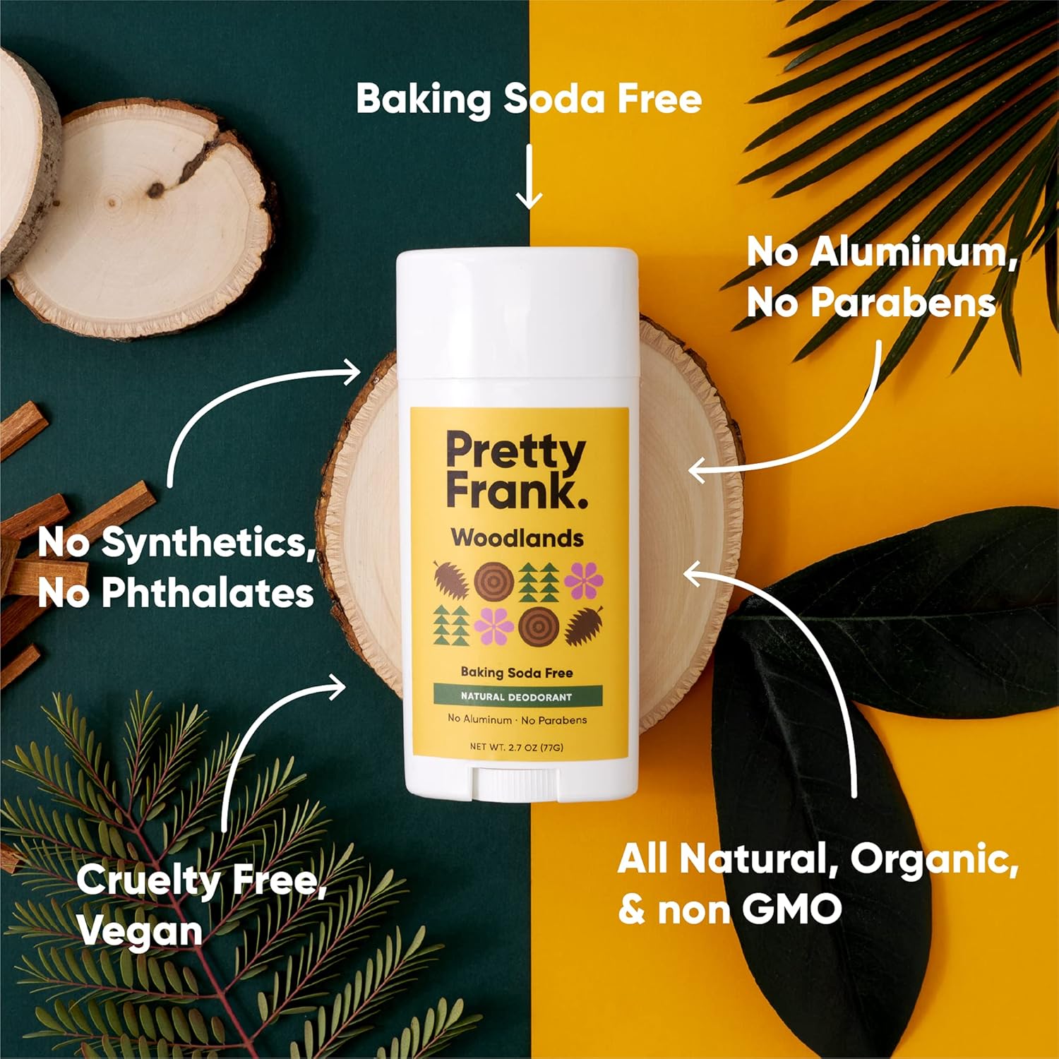 Pretty Frank Natural Aluminum-Free Deodorant Stick, Baking Soda-Free, Woodlands (1-Pack) | Sensitive Skin Friendly, Effective Odor Control for Women & Men, Organic Ingredients and Essential Oils