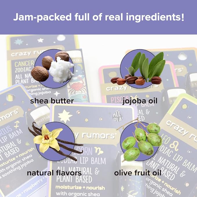 Crazy Rumors Capricorn Zodiac All Natural, Plant Based Lip Balm to Moisturize and Nourish your Lips - Earth Blend (Sweet Vanilla, Fragrant Rose and Plum)