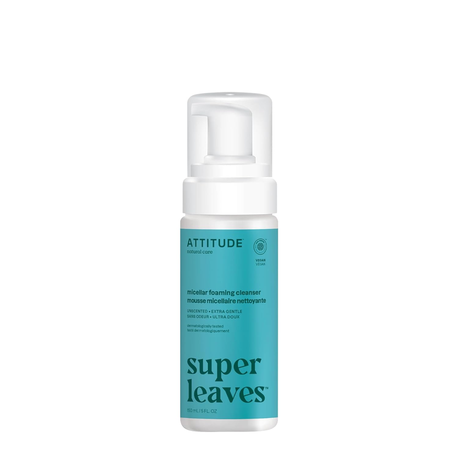 ATTITUDE Micellar Foaming Facial Cleanser, EWG Verified, Dermatologically Tested, Plant and Mineral-Based, Vegan, Unscented, 5 Fl Oz