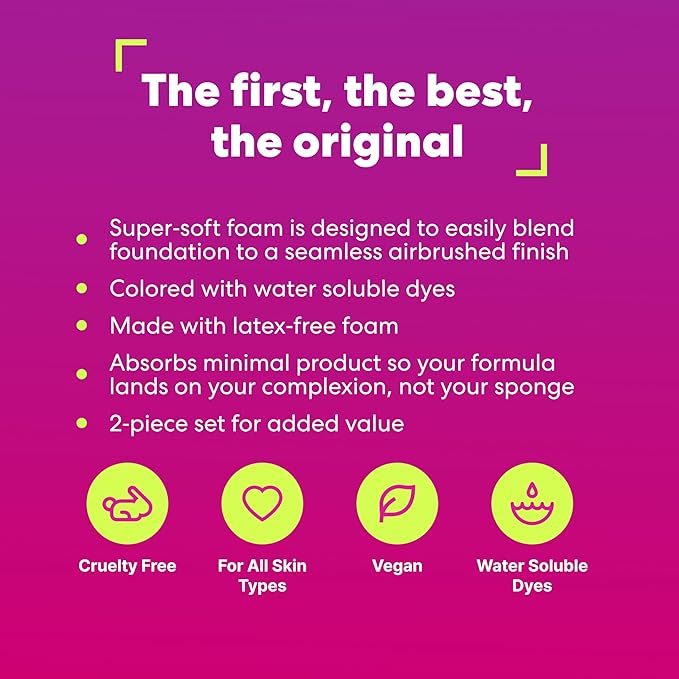 - SMOOTH BLEND: The award winning aqua-activated sponges grow to about twice their size when wet, and absorbs minimal product so your formula lands on your complexion and not your sponge. Bounce and blend the soft sponge to a smooth finish.