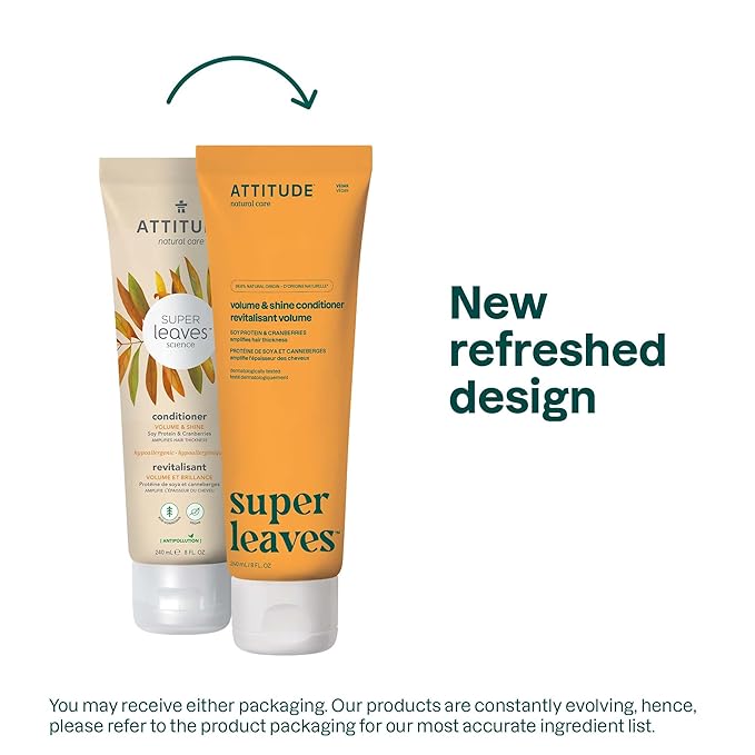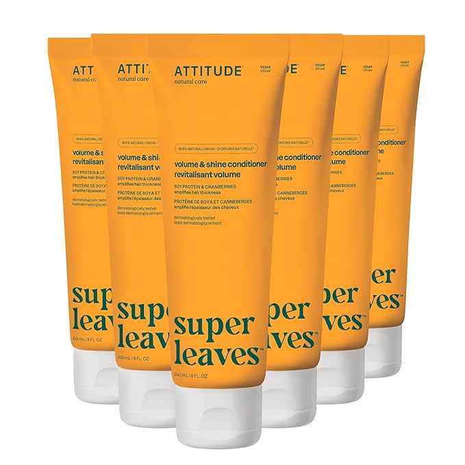 ATTITUDE Volume and Shine Hair Conditioner, For Thin Hair, Naturally Derived Ingredients, Vegan Detangler, Dermatologically Tested, Soy Protein & Cranberries, 8 Fl Oz (Pack of 6)