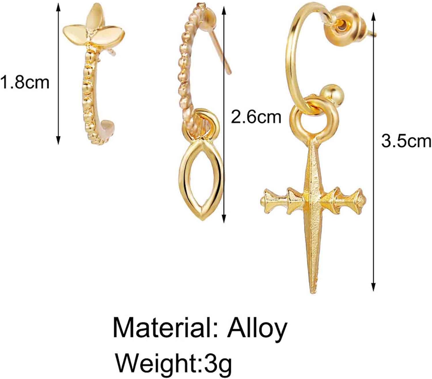 - Tiny Cross Dangle Earrings made of good quality alloy,comfortable to wear.3Pcs each set.