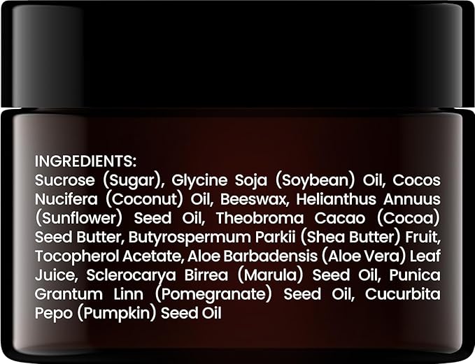 - NOURISHING INGREDIENTS – The natural ingredients contained in this scrub such as Coconut Oil, Sunflower Oil, Cocoa Butter, and Shea Butter are all known for their nourishing properties.