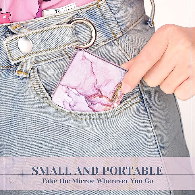 - Marble Outlook: the appearance of the pocket mirror for women is exquisite marble texture, which gives people an elegant feeling and brings you a different visual enjoyment; The marble pattern is wavy, and the appearance of marble design is favored by many women; The mirror adopts a folding design, which can effectively keep clean and is not easy to break
