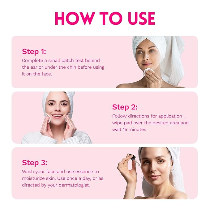 - NON-WOVEN TEXTURED RESURFACING PADS-- Each jar comes with 80 non-woven textured resurfacing pads and 1 tweezer for easy application. Step 1: Complete a small patch test behind the ear or under the chin before using it on the face. Step 2: Carefully follow directions for application and discontinue use immediately if any redness or irritation occurs. Step 3. wipe pad over the desired area and wait 15 minutes and then rinse your face.