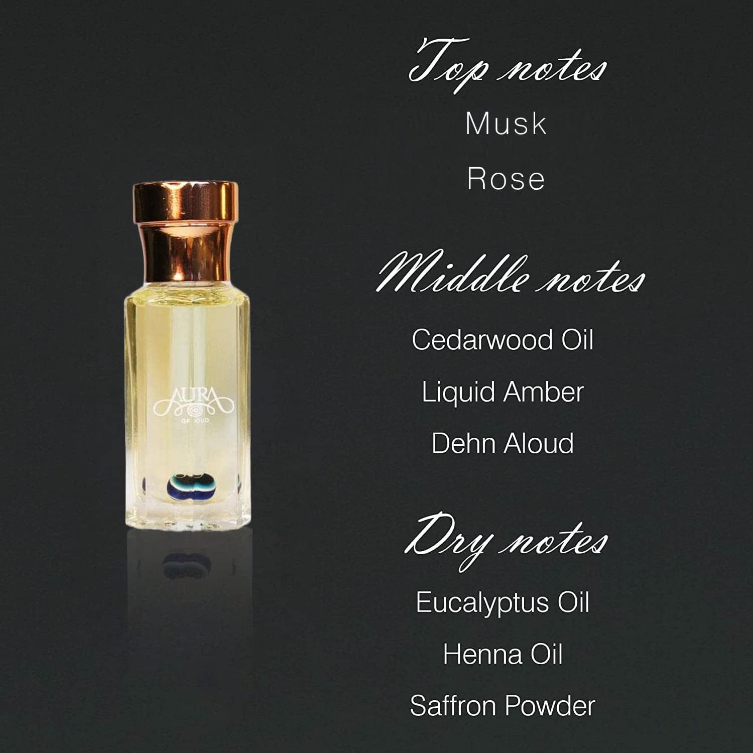 - This beautifully crafted women's fragrance is inspired from traditional Arabian and Middle Eastern parfum products and traditions. Top Notes: Sandalwood, Vanilla; Middle Notes: Cedarwood Oil, Liquid Amber, Dehn Aloud; Dry Notes: Eucalyptus Oil, Henna Oil, Saffron Powder.