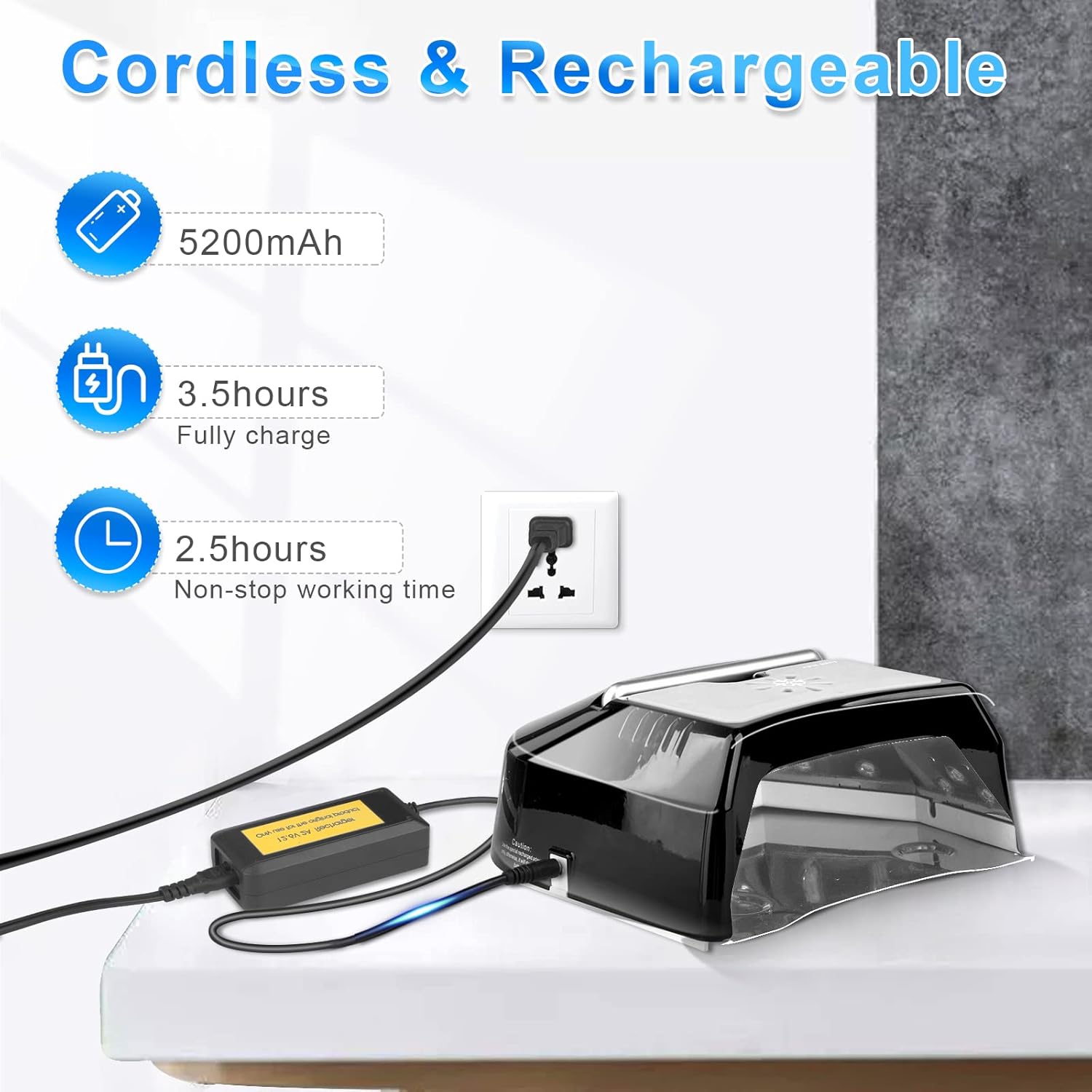 - 【Rechargeable Cordless Design】 This wireless UV light for nails built-in a 5200mAh battery, and the premium quality battery can be used for 3hours after being fully charged. This uv light for nails is a great choice for a manicure when there is no power outlet, you can take it anywhere you want.