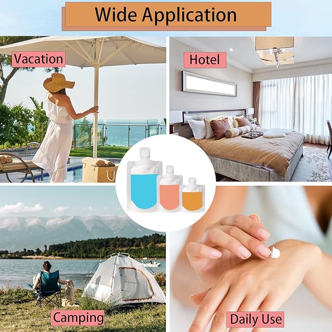 - 【Premium Quality & Design】-- The sub bags for travel are made of high quality PET plastic material, studry, refillable, reusable and lightweight. And the flat pouch style not only makes it less space-consuming, but also allows it to stand up on its own.