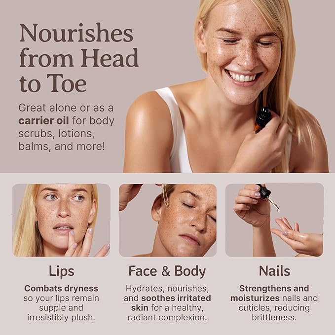 - Special Feature : 100% Money Back Guarantee. Bottled in the USA. Veteran-owned business., 100% Pure. Organic. Unrefined. Cold-pressed. Cruelty-free. Natural., Free from: parabens, hexanes, additives, preservatives., Minimizes Wrinkles. Leaves Skin Smooth and Soft. Prevents Stretch Marks. Promotes Skin Elasticity., Registered Organic with the State of California Dept of Public Health Food & Drug Branch. Reg# 112841.100% Money Back Guarantee. Bottled in the USA. Veteran-owned business., 100% Pure. Organic. Unrefined. Cold-pressed. Cruelty-free. Natural., Free from: parabens, hexanes, additives, preservatives., Minimizes Wrinkles. Leaves Skin Smooth and Soft. Prevents Stretch Marks. Promotes Skin Elasticity., Registered Organic with the State of California Dept of Public Health Food & Drug Branch. Reg# 112841. See more