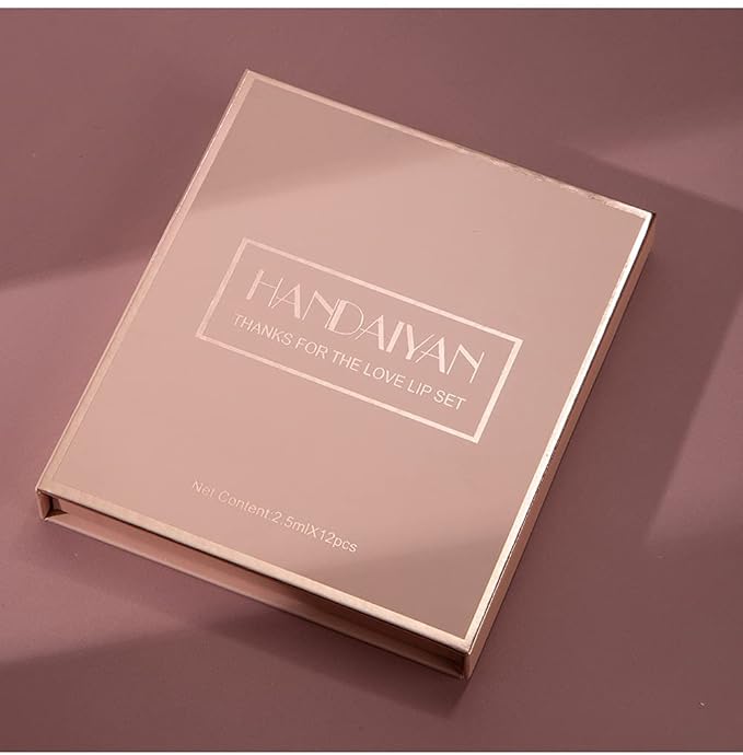 12 Colors Book Style Velvet Matte Liquid Lipstick Christmas Gift Set Long-Lasting Non-Stick Cup Not Fade Shimmer Nude Lip Gloss Thanks For the Love Lip Set (Set B)