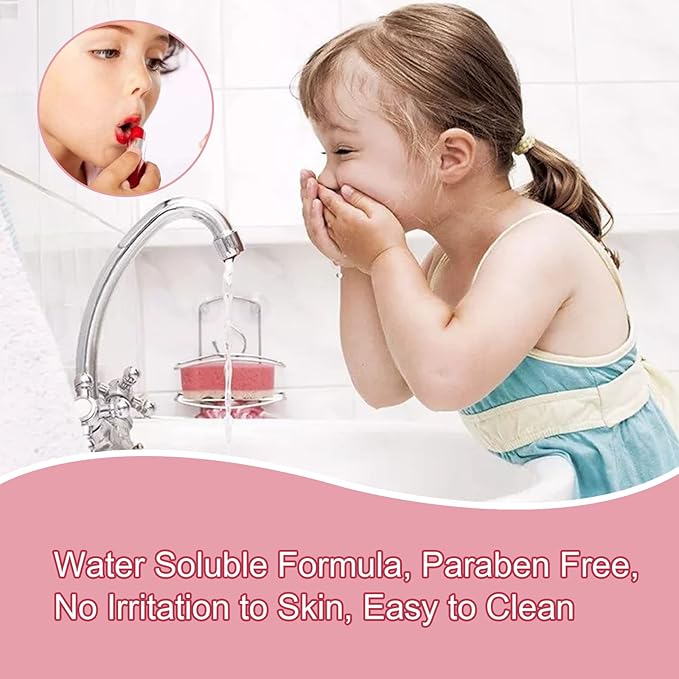 - As we know younger skin maybe somewhat sensitive on makeup chemicals, this lip gloss kit is safe and non-toxic for little kids. Never tested on animals. Washable cosmetic is easy to remove with mild soap and water.