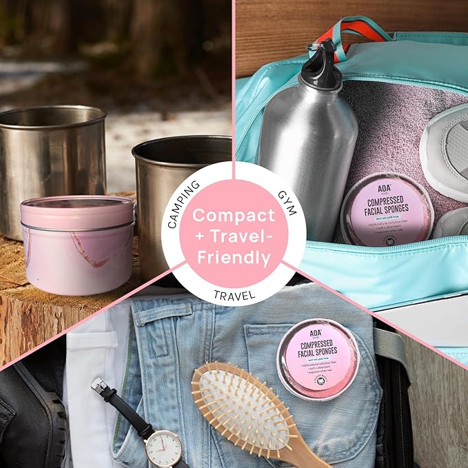 AOA Studio 50-Count Compressed Facial Sponges 100% Natural Cosmetic Spa Sponges for Facial Cleansing, Exfoliating Mask, Remove for Makeup, Dead Skin, and Dirt (50 counts, Pink)