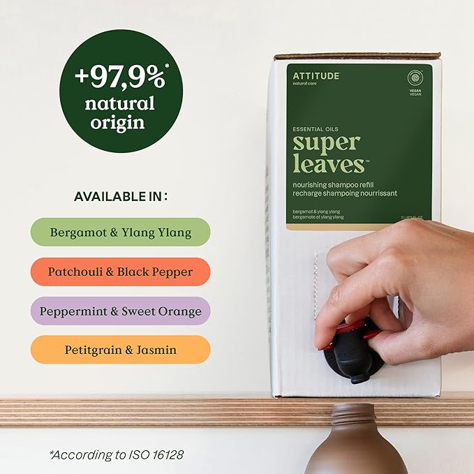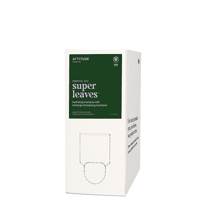 ATTITUDE Hydrating Shampoo Refill, Peppermint & Sweet Orange, EWG Verified with Essential Oils, Vegan & Plant-Based, For Dry and Damaged Hair, 67.6 Fl Oz
