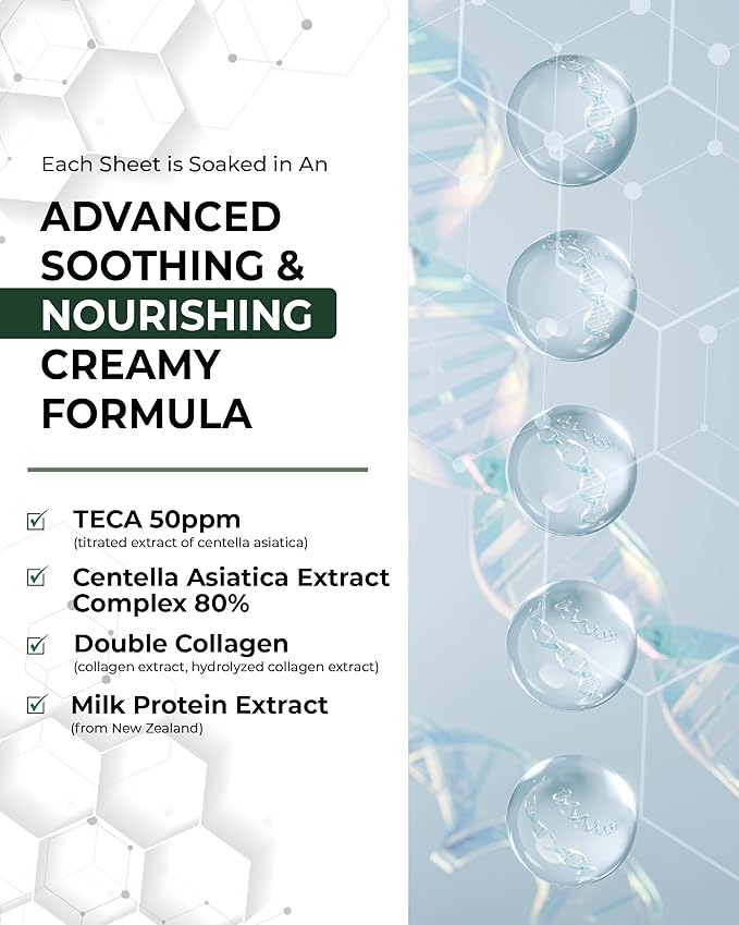 - SOFT & COMFY SHEET MASK - Centella 80 Mask is made from non-skin irritating material, making it extra soft and comfortable. The mask soaked in a rich creamy essence adheres to your face, ensuring that every inch of your skin is covered for full nourishment.