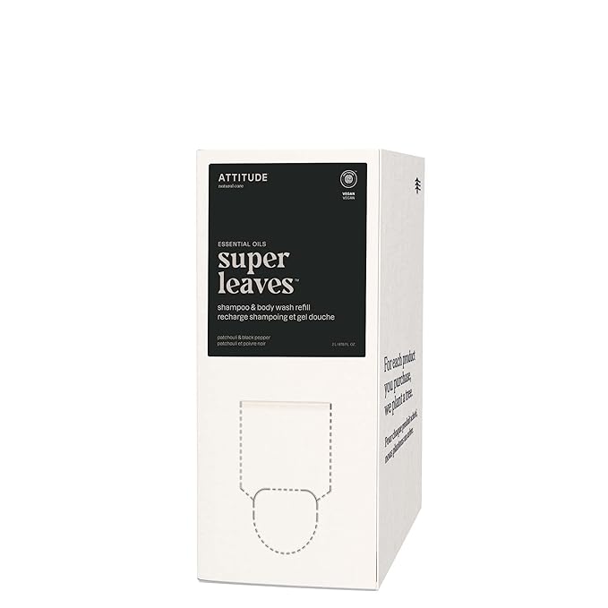 ATTITUDE 2-in-1 Body Wash and Hair Shampoo, EWG Verified Shower Gel, Dermatologically Tested, Made with Naturally Derived Ingredients, Vegan Personal Care, Patchouli and Black Pepper, 67.6 Fl Oz