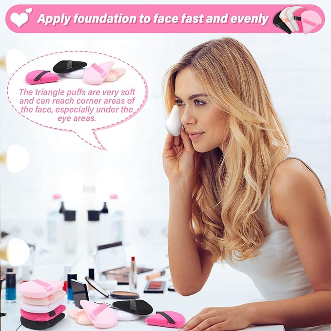 - Practical Design: The face powder sponge is designed with a triangle and circle shape, which is proper to apply powder more evenly and thoroughly in the hard-to-reach corners, makes your makeup process more efficient