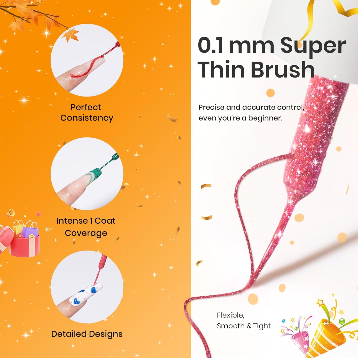 - 【Ideal Gifts】: Beetles gel liner nail polish is suitable for professional nail salons and DIY enthusiasts, offers multiple options to create impressive and stunning nail art designs. It is also suitable for various scenes of daily life, such as photography, going out, parties, weddings and other activities or professional applications.To be a great gift for mothers, sisters and friends on various festivals such as birthday, Christmas, Valentine's Day, Mother's Day and anniversary.