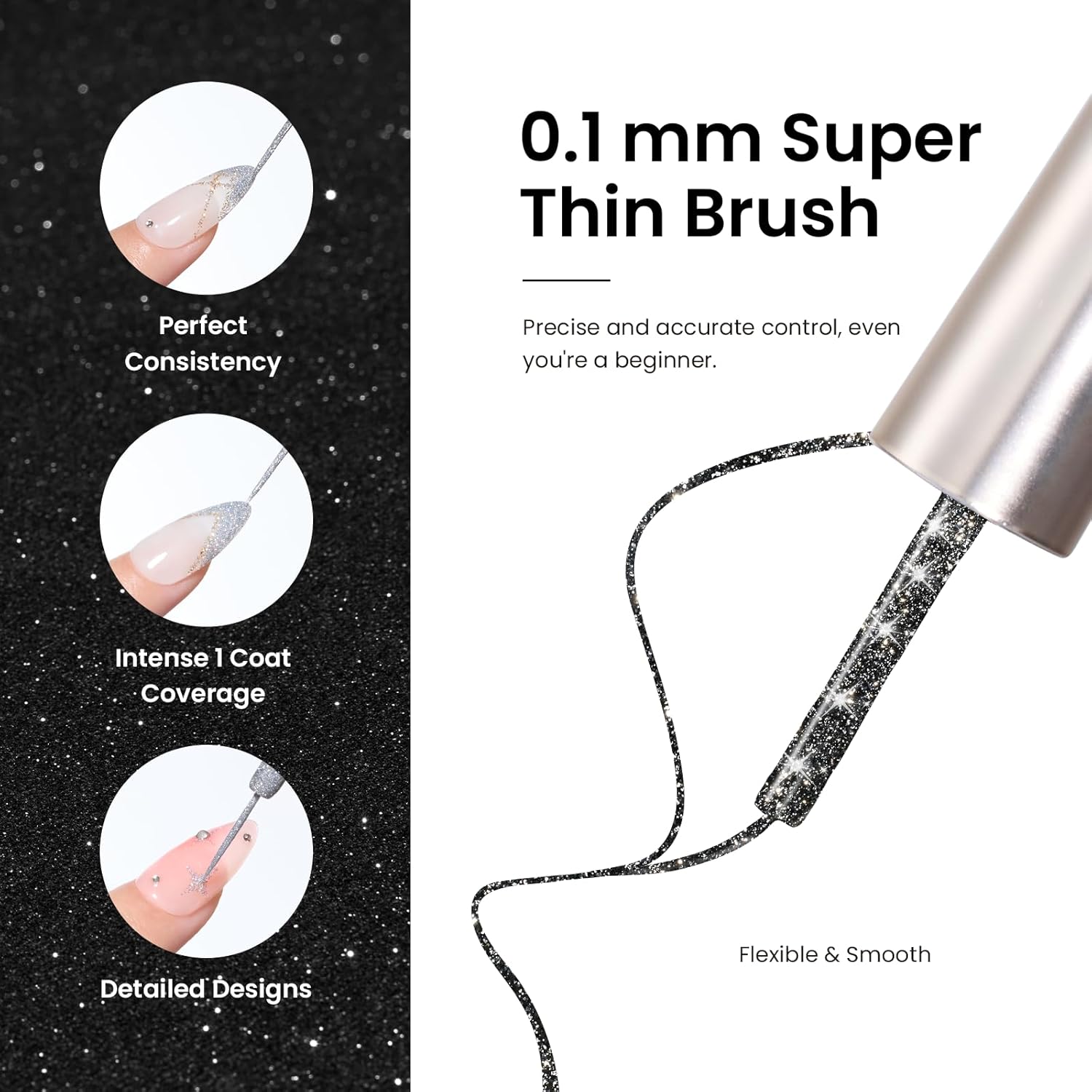 - 【Beetles Reflective Glitter Gel Polish Set】: Perfect for those trendy squiggly lines abstract painting that are so popular now, also works perfect for adding a French line! With the built thin brushes in, you don't have to get out your set of brushes for adding details and lines.
