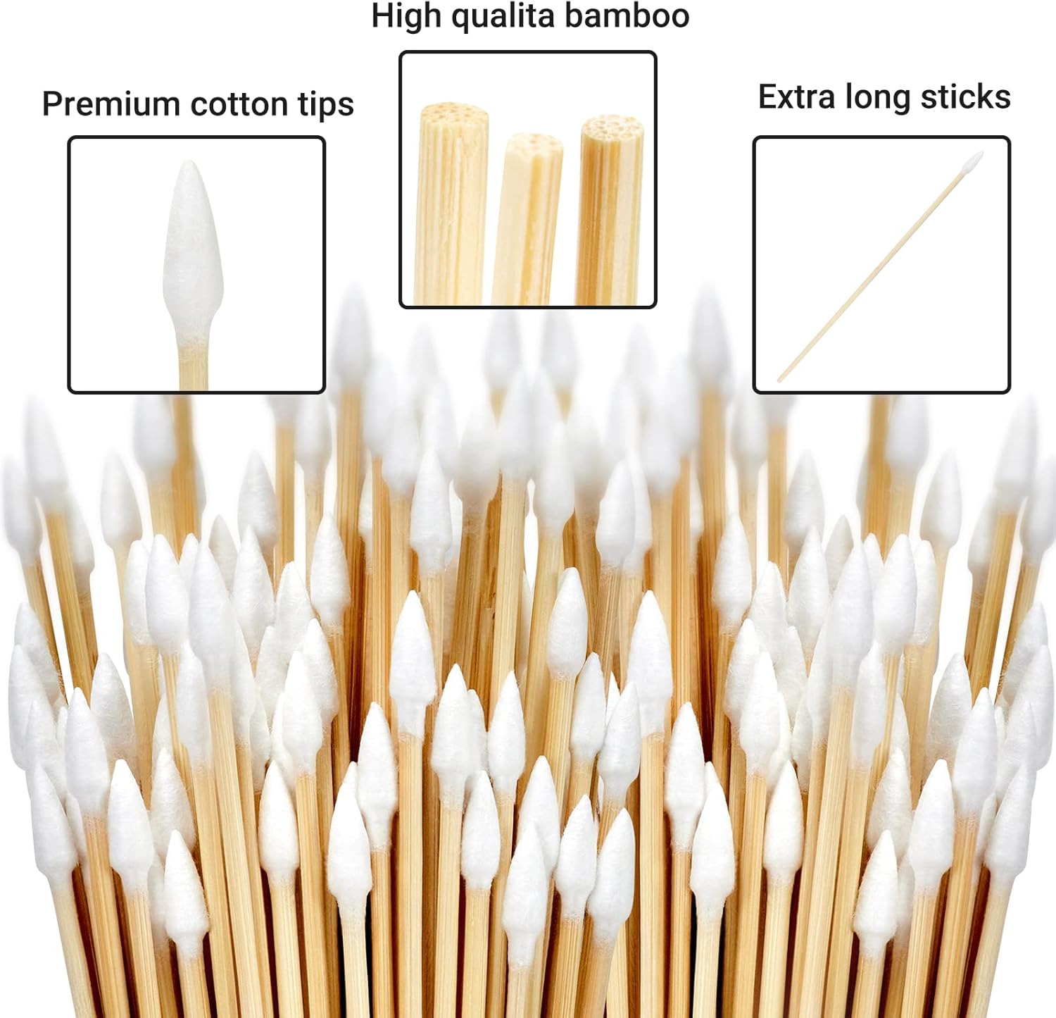 - Composition: Each of long cotton swab is made from pure cotton, natural bamboo stick, it's extremely healthy, gentle on the skin