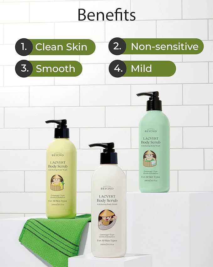 - BEYOND LACVERT BODY SCRUB (300ml/10.1fl oz) - Our body scrub, with its gommage-type formulation, offers a gentle and precise exfoliation experience. Massage away impurities with customizable intensity for smoother skin texture, enhanced skincare product absorption, and a spa-like indulgence at home.