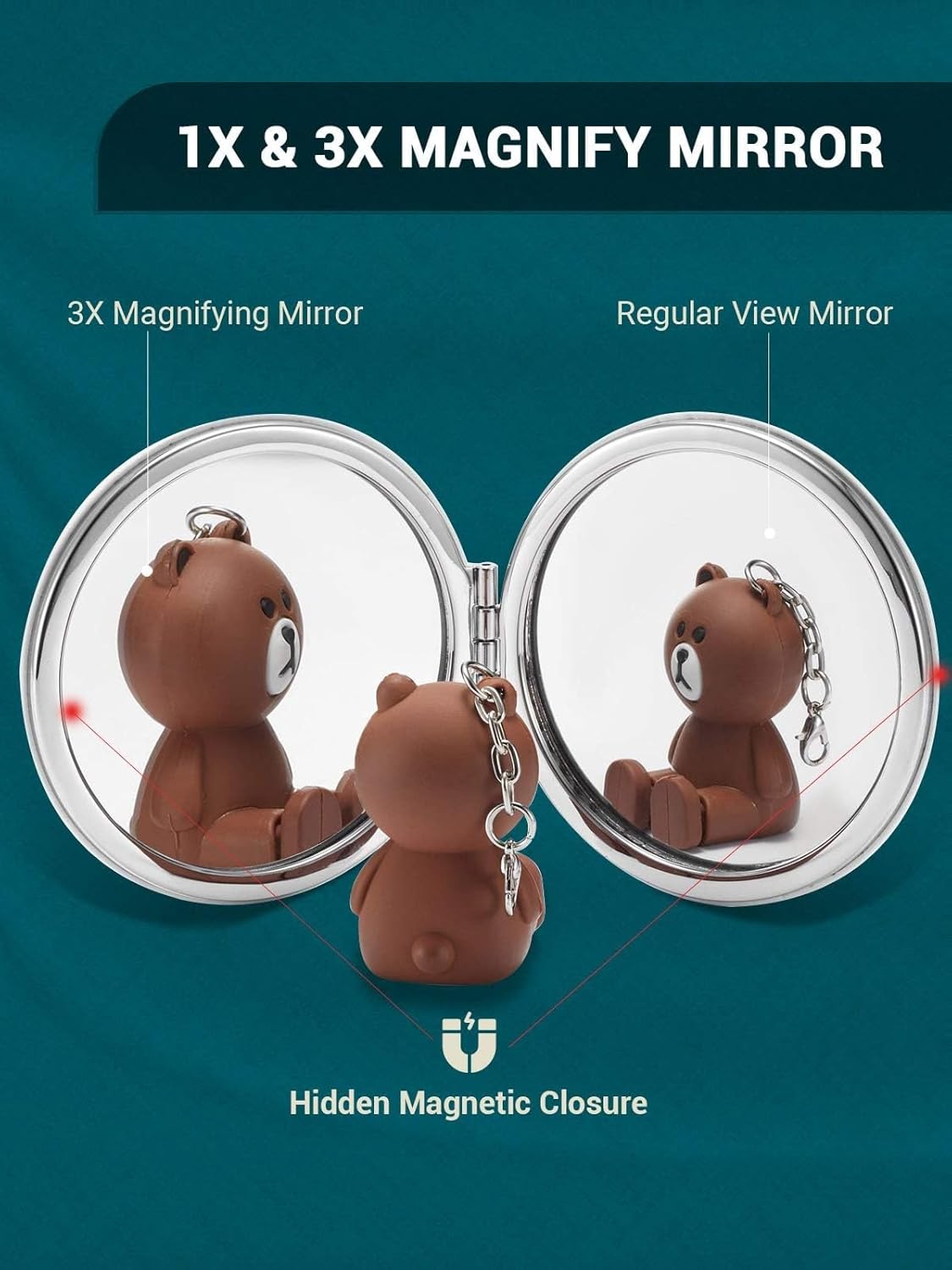 - 1X & 3X MAGNIFICATION: 2-sided pocket mirrors meet all your needs for cosmetic usage. The regular mirror is ideal for observing the entire face, while the 3X magnifier works great for mascara, tweezing and plucking, flossing,etc