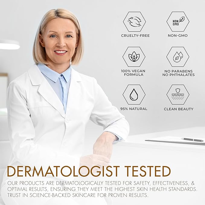 - NATURAL CLEAN INGREDIENTS: Our serum is crafted with clean, natural ingredients, free from parabens, phthalates, and GMOs. Enriched with 24K Gold and Retinol, it promotes cell turnover and combats signs of aging while ensuring a hypoallergenic formula.