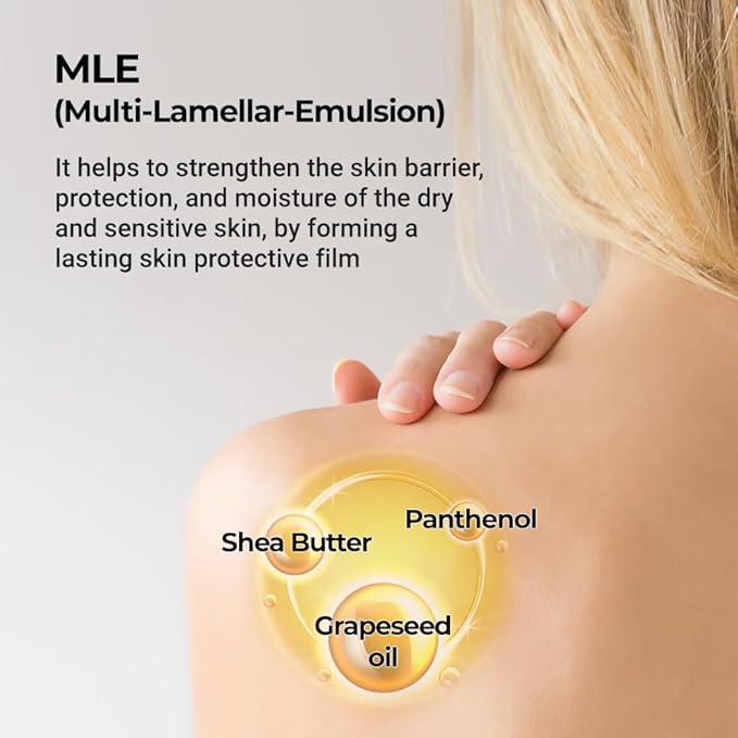 - HYPOALLERGENIC & MOISTURE: Enriched with shea butter, grape seed oil, and panthenol, the MLE complex mimics the skin’s natural structure to enhance moisture absorption and hydration retention.