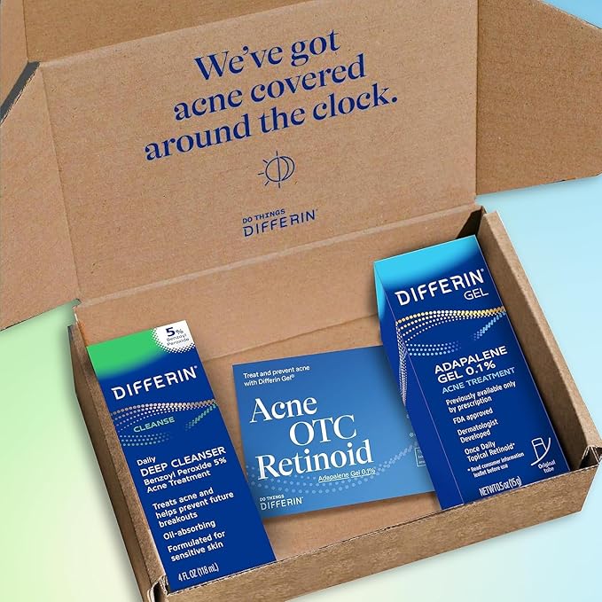 Differin Acne Skin Care Kit, Differin Gel Retinoid Acne Treatment for Face with 0.1% Adapalene & 5% Benzoyl Peroxide Face Wash & Body Wash, Designed for Pimple and Acne Prone Skin